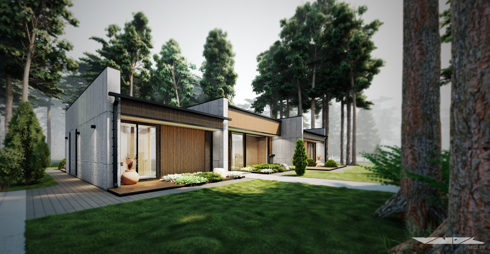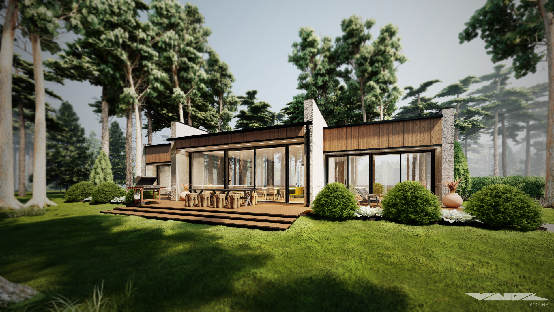This thoughtfully designed home is located near Pärnu, in the village of Mereküla, just a short distance from the coast. Nestled on a gently contoured, tree-filled plot accessible only via a quiet cul-de-sac from the north side, the setting offers exceptional privacy and character.